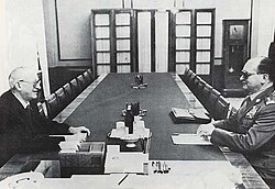 As a matter of continuous policy, the Russian autocracy kept assailing Polish national core values of language, religion and culture.[69] In consequence, despite the limited liberalization measures allowed in Congress Poland under the rule of Tsar Alexander II of Russia, a renewal of popular liberation activities took place in 1860–1861. During large-scale demonstrations in Warsaw, Russian forces inflicted numerous casualties on the civilian participants. The "Red", or left-wing faction of Polish activists, which promoted peasant enfranchisement and cooperated with Russian revolutionaries, became involved in immediate preparations for a national uprising. The "White", or right-wing faction, was inclined to cooperate with the Russian authorities and countered with partial reform proposals. In order to cripple the manpower potential of the Reds, Aleksander Wielopolski, the conservative leader of the government of Congress Poland, arranged for a partial selective conscription of young Poles for the Russian army in the years 1862 and 1863.[61] This action hastened the outbreak of hostilities. The January Uprising, joined and led after the initial period by the Whites, was fought by partisan units against an overwhelmingly advantaged enemy. The uprising lasted from January 1863 to the spring of 1864,[61] when Romuald Traugutt, the last supreme commander of the insurgency, was captured by the tsarist police.[70][71]