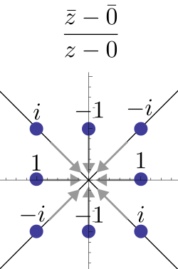 (see the Cauchy–Riemann equations, below). So, it is not holomorphic at