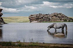 Height is not the sole criterion for distinguishing horses from ponies. Breed registries for horses that typically produce individuals both under and over 14.2 hands (58 inches, 147 cm) consider all animals of that breed to be horses regardless of their height.[35] Conversely, some pony breeds may have features in common with horses, and individual animals may occasionally mature at over 14.2 hands (58 inches, 147 cm), but are still considered to be ponies.[36]