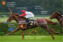 - ^ a b Kang, Hyungsuk; Zsoldos, Rebeka R.; Sole-Guitart, Albert; Narayan, Edward; Cawdell-Smith, A. Judith; Gaughan, John B. (April 15, 2023). "Heat stress in horses: a literature review". International Journal of Biometeorology. 67 (6): 957–973. Bibcode:2023IJBm...67..957K. doi:10.1007/s00484-023-02467-7. PMC 10267279. PMID 37060454.