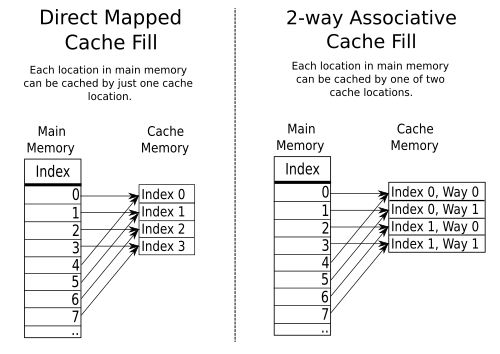 [edit]A true set-associative cache tests all the possible ways simultaneously, using something like a content-addressable memory. A pseudo-associative cache tests each possible way one at a time. A hash-rehash cache and a column-associative cache are examples of a pseudo-associative cache.
