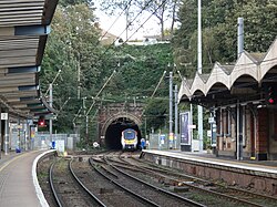 [edit]Water troughs were installed at Halifax Junction in 1897[58] south of Ipswich tunnel. These were used by trains to pick up water using a scoop operated by the engine crew, although water cranes were located on the platforms at the station as well. Using the troughs was a quicker method of filling the tenders of steam locomotives and they were located between the rails in the centre of the tracks. These were heated in winter to prevent freezing. The Ipswich troughs fell out of use in the 1960s when steam locomotives were withdrawn from East Anglia.[59]