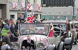 [edit]During the Second World War, 6,500 Jersey residents were evacuated by their own choice to the UK out of a total population of 50,000.[46] Jersey was occupied by Germany from 1 July 1940 until 9 May 1945, when Germany surrendered.[47] During this time the Germans constructed many fortifications using slave labour imported onto the island from many different countries occupied or at war with Germany.[48] After 1944, supplies from France were interrupted by the D-Day landings, and food on the island became scarce. The SS Vega was sent to the island carrying Red Cross supplies and news of the success of the Allied advance in Europe. During the Nazi occupation, a resistance cell was created by communist activist Norman Le Brocq and the Jersey Communist Party, whose communist ideology of forming a 'United Front' led to the creation of the Jersey Democratic Movement.[49]