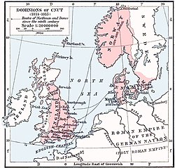 On 12 July 927 the monarchs of Britain gathered at Eamont Bridge, now in Cumbria, to recognise Æthelstan as king of the English.[4] The title "King of the English" or Rex Anglorum in Latin, was first used to describe Æthelstan in one of his charters in 928. The standard title for monarchs from Æthelstan until John was "King of the English". During the following years Northumbria repeatedly changed hands between the English kings and the Norwegian invaders, but was definitively brought under English control by Eadred in 954, completing the unification of England.[17] In 1018, Lothian, a portion of the northern half of Northumbria Bernicia was ceded to the Kingdom of Scotland.[18][19]