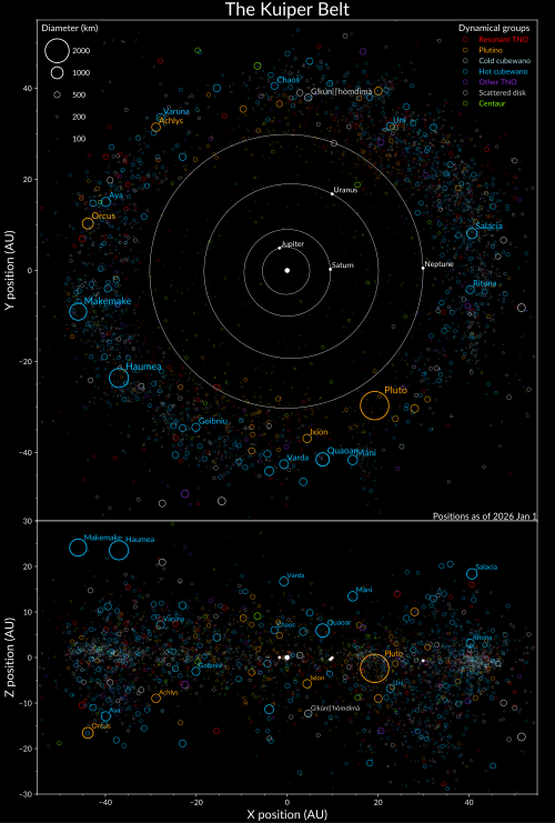 - Minor Planet Center: Plot of the Outer Solar System, illustrating Kuiper gap