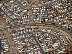 Throughout the world, there are rising levels of environmental degradation due to unclean energy usage in the development and powering of cities and neighborhoods. In the 20th century, there was a global push to develop large cities quickly to accommodate the people who were migrating from rural areas to cities for jobs.[14] The type of energy used for this was either coal or oil fuel, which meant that the environment was disregarded and damaged by numerous urban development projects.[14] Today, the United Nations has found that over half of the world's population lives in cities that are still growing.[15] In order to create environmentally viable urban landscapes, the UN advocated for green energy use, as well as urban development that encouraged green-friendly transportation. In the United States, about 75% of the energy used is allocated to power buildings and modes of transportation; land use planning can be a useful tool in changing these aspects of energy usage in a way that would be beneficial to both residents and the ecology.[14]