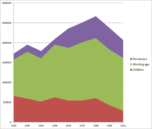 | Census year | Children | Working age | Pensioners |