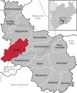 Lindlar (German pronunciation: [ˈlɪndlaʁ]; Kölsch: Lenkeln [ˈléŋkəln]) is a municipality in the Oberbergischer Kreis, in North Rhine-Westphalia, Germany. It is located about 30 km east of Cologne..