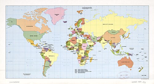 While the population data[1] is almost exclusively dated 1989, political developments before the summer of 1990 are taken into account, including Yemeni unification and Namibian independence but not German reunification which was finalised only in October, the breakup of Yugoslavia and dissolution of the Soviet Union took place two years later, and the dissolution of Czechoslovakia three years later.