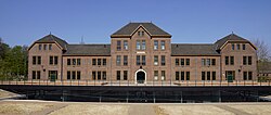 [edit]The first building that was obtained by the university was the former Jesuit monastery and seminary at Tongersestraat, largely dating from the 1930s. Here, in 1974 the newly established medical school started. After the faculty of medicine moved to premises closer to the newly constructed university hospital, the Jesuit monastery became home to the Faculty of Economy, which is now the university's largest academic unit in terms of student numbers. The building was expanded in the 1990s to include the university restaurant (mensa in Dutch) and a large lecture hall designed by Dutch architect Jo Coenen.