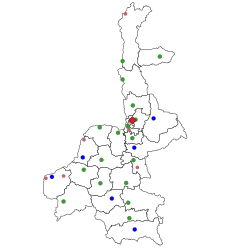 [edit]Before 2010, Mandalay Region consisted of 8 districts. Later Pyinmana district was formed as Union Territory under the direct administration of president. So Mandalay Region remains 28 townships organized into eleven districts.
