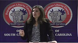 In August 2013, she announced her candidacy in the 2014 election for the Republican nomination for U.S. Senate in South Carolina.[18][19][20] She received 19,560 votes (6.2% of the vote) in the primary election on June 10, 2014, behind Lindsey Graham (56.4%), Lee Bright (15.4%), Richard Cash (8.3%), and Det Bowers (7.3%).[21][22]