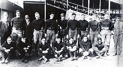 On August 20, 1920, a meeting was held by representatives of the Akron Pros, Canton Bulldogs, Cleveland Indians, and Dayton Triangles at the Jordan and Hupmobile auto showroom in Canton, Ohio.[14] This meeting resulted in the formation of the American Professional Football Conference (APFC), a group who, according to the Canton Evening Repository, intended to "raise the standard of professional football in every way possible, to eliminate bidding for players between rival clubs and to secure cooperation in the formation of schedules".[15]