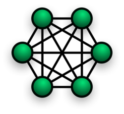 A fully connected network, complete topology, or full mesh topology is a network topology in which there is a direct link between all pairs of nodes. In a fully connected network with n nodes, there are direct links. Networks designed with this topology are usually very expensive to set up, but provide a high degree of reliability due to the multiple paths for data that are provided by the large number of redundant links between nodes. This topology is mostly seen in military applications.