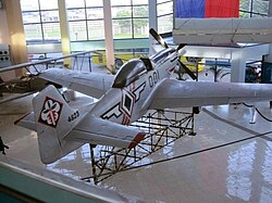 The NA-73X, which was designed by a team led by lead engineer Edgar Schmued, followed the best conventional practice of the era, designed for ease of mass manufacturing.[14] The design included several new features.[nb 1] One was a wing designed using laminar flow airfoils, which were developed co-operatively by NAA and the National Advisory Committee for Aeronautics (NACA). These airfoils generated low drag at high speeds.[17][b] During the development of the NA-73X, a wind-tunnel test of two wings, one using NACA five-digit airfoils and the other using the new NAA/NACA 45–100 airfoils, was performed in the University of Washington Kirsten Wind Tunnel. The results of this test showed the superiority of the wing designed with the NAA/NACA 45–100 airfoils.[19][nb 2]