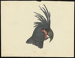 [edit]The palm cockatoo was formally described in 1788 by naturalist Johann Friedrich Gmelin in his revised and expanded edition of Carl Linnaeus's Systema Naturae, in which he classified the bird with other parrots in the genus Psittacus and coined the binomial name Psittacus aterrimus.[6] Gmelin based his description on the "black cockatoo" that had been described and illustrated in 1764 by English naturalist George Edwards.[7] Joan Gideon Loten had provided Edwards with a drawing of the bird by the Sri Lankan artist Pieter Cornelis de Bevere;[8] the original drawing by de Bere is in the collection of the Natural History Museum, London.[9]
