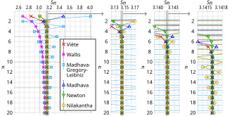 An infinite series for π (published by Nilakantha in the 15th century) that converges more rapidly than the Gregory–Leibniz series is:[75][76]