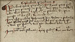 [edit]In the 1100s, ⟨C⟩ had completely replaced ⟨K⟩ as the symbol for a new chapter.[6] Rubricators eventually added one or two vertical bars to the C to stylize it (as ⸿); the "bowl" of the symbol was filled in with dark ink and eventually looked like the modern pilcrow, ¶.[6]