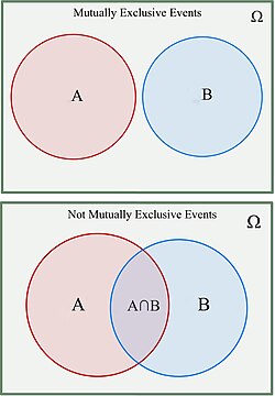 [edit]If either event A or event B can occur but never both simultaneously, then they are called mutually exclusive events.