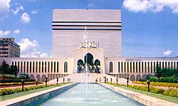 The United Nations categorizes Bangladesh as a moderate democratic Muslim country.[4][5] The Constitution of Bangladesh refers to Islam twice: the document begins with the Islamic phrase Bismillahir Rahmanir Raheem (Arabic: بِسْمِ اللهِ الرَّحْمٰنِ الرَّحِيْمِ, lit. 'In the name of Allah, the Beneficent, the Merciful') and article (2A), added later, declares that: "Islam is the state religion of the republic".[6] Former Prime Minister of Bangladesh Sheikh Hasina stated that Bangladesh would be governed in line with the spirit of the Islamic Constitution of Medina.[7][8]
