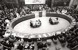 Belgrade, the capital of FPR Yugoslavia and PR Serbia, hosted the first Non-Aligned Movement Summit in September 1961, as well as the first major gathering of the Organisation for Security and Co-operation in Europe (OSCE) with the aim of implementing the Helsinki Accords from October 1977 to March 1978.[127][128] The 1972 smallpox outbreak in SAP Kosovo and other parts of SR Serbia was the last major outbreak of smallpox in Europe since World War II.[129]