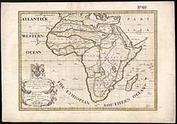 Exploration of the Southern Ocean was inspired by a belief in the existence of a Terra Australis – a vast continent in the far south of the globe to "balance" the northern lands of Eurasia and North Africa – which had existed since the times of Ptolemy. The rounding of the Cape of Good Hope in 1487 by Bartolomeu Dias first brought explorers within touch of the Antarctic cold, and proved that there was an ocean separating Africa from any Antarctic land that might exist.[45] Ferdinand Magellan, who passed through the Strait of Magellan in 1520, assumed that the islands of Tierra del Fuego to the south were an extension of this unknown southern land. In 1564, Abraham Ortelius published his first map, Typus Orbis Terrarum, an eight-leaved wall map of the world, on which he identified the Regio Patalis with Locach as a northward extension of the Terra Australis, reaching as far as New Guinea.[46][47]