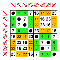 | + | 0 | 4 | 2 | 6 | 1 | 5 | 3 | 7 |