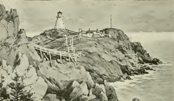 [edit]The wreck of the merchant ship Lord Ashburton in 1857 on the northern tip of Grand Manan, with the loss of 21 lives, led the New Brunswick Legislative Assembly to call for "a Light House to be erected on the Northern Head of Grand Manan".[4] The site chosen was a headland called the "Swallow's Tail" near the entrance to the harbour at North Head. The lighthouse tower and keeper's dwelling were built in 1859 at a cost of £495 and the lantern was first lit on 7 July 1860.[5]: 17 It was the first lighthouse to be built on the island of Grand Manan.[6]