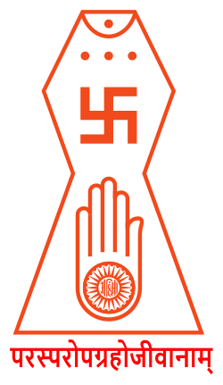 In Jainism, it is a symbol of the seventh tīrthaṅkara, Suparśvanātha.[1] In the Śvētāmbara tradition, it is also one of the aṣṭamaṅgala or eight auspicious symbols. All Jain temples and holy books must contain the swastika and ceremonies typically begin and end with creating a swastika mark several times with rice around the altar. Jains use rice to make a swastika in front of statues and then put an offering on it, usually a ripe or dried fruit, a sweet (Hindi: मिठाई miṭhāī), or a coin or currency note. The four arms of the swastika symbolise the four places where a soul could be reborn in samsara, the cycle of birth and death – svarga "heaven", naraka "hell", manushya "humanity" or tiryancha "as flora or fauna" – before the soul attains moksha "salvation" as a siddha, having ended the cycle of birth and death and become omniscient.[4]