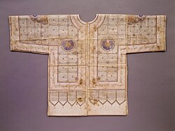 Talismanic shirts are found throughout the Islamic world. The earliest surviving examples date from the 15th century, but the tradition is thought to pre-date that.[17] The shirts may be inscribed with verses from Quran or names of Allah and of prophets. They may also carry images of holy sites or astrological symbols. The inscribed names are believed to offer protection and guidance to the carrier.[18] Talismanic shirts were worn to protect against many evils; many were made to be worn under armour as an additional form of protection.[17]