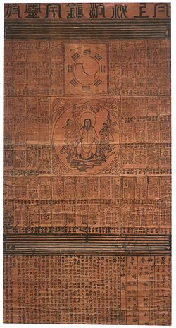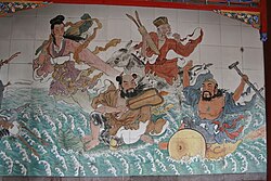 Under the Ming dynasty (1368–1644), aspects of Confucianism, Taoism, and East Asian Buddhism were consciously synthesized in the Neo-Confucian school, which eventually became Imperial orthodoxy for state bureaucratic purposes.[103] Taoist ideas also influenced Neo-Confucian thinkers like Wang Yangming and Zhan Ruoshui.[104] During the Ming, the legends of the Eight Immortals (the most important of which is Lü Dongbin) rose to prominence, being part of local plays and folk culture.[105] Ming emperors like the Hongwu Emperor continued to invite Taoists to court and hold Taoist rituals that were believed to enhance the power of the throne. The most important of these were connected with the Taoist deity Xuanwu ("Perfect Warrior"), which was the main dynastic protector deity of the Ming.[88]