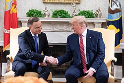 - ^ Baker, Peter (June 12, 2019). "Trump Embraces Poland's President and Promises Him More U.S. Troops". New York Times. Retrieved June 13, 2019.