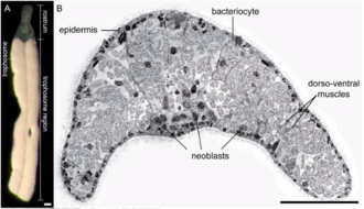 - ^ Leisch N, Dirks U, Gruber-Vodicka HR, Schmid M, Sterrer W, Ott JA (2011). "Microanatomy of the trophosome region of Paracatenula cf. polyhymnia (Catenulida, Platyhelminthes) and its intracellular symbionts". Zoomorphology. 130 (4): 261–271. doi:10.1007/s00435-011-0135-y. PMC 3213344. PMID 22131640.