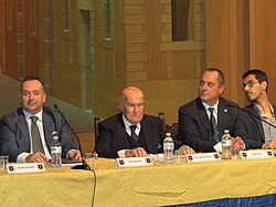 In 2008, Veronesi was the successful main candidate in Milan for the Democratic Party (PD) to the Senate of the Republic.[11][13] From 2010 to 2011, he was also chairman of Italy's Nuclear Safety Agency.[36][37][38] After being appointed on 5 November 2010 as the head of the Italian Nuclear Safety Agency, Veronesi, who was a member of the 7th Public Education Commission on Cultural Heritage from 22 May 2008 to 22 February 2011, renounced to his senatorial seat in order to preside over the Nuclear Safety Agency. He was succeeded by Francesco Monaco.[39] Later on 3 November 2011, Veronesi left the Nuclear Safety Agency, after announcing his resignation on 3 September 2011,[38] in a controversy with the fourth Berlusconi government, complaining about the absence of headquarters, a formal appointment decree, and the minimum structures to allow the agency to begin and carry out its activities.[11][13] His opposition to what he described as "the unjustified bogeyman" of nuclear power and his support for the usefulness and harmlessness of incineration earned him criticism from Beppe Grillo.[11][13][nb 10] For the 2012 Italian centre-left primary election, he said that he was inclined to vote for the left-wing candidate Nichi Vendola of Left Ecology Freedom (SEL).[11][13] In the 2016 Milan municipal election, he expressed his support for the centre-left coalition candidate and eventual winner Giuseppe Sala.[11][13]