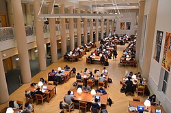 The University of Illinois Urbana-Champaign is a member of the Association of American Universities and is classified among "R1: Doctoral Universities – Very high research activity".[12] In fiscal year 2019, research expenditures at Illinois totaled $652 million.[13][11] The campus library system possesses the fourth-largest university library in the United States by holdings.[14] The university also hosts the National Center for Supercomputing Applications.[15]