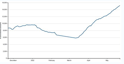 Instead of reaching a magic 300 as it once did last year, the backlog approaching 6,000 is still far too high. An effort is also needed to ensure that older unsuitable older pages at the back of the queue do not get automatically indexed for Google.