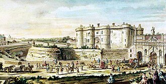In early 1726, Guy Auguste de Rohan-Chabot taunted Voltaire about his name change, who retorted that his name would win the esteem of the world, while Rohan would sully his own.[40] A furious Rohan arranged for his servants to beat Voltaire a few days later.[41] Seeking redress, Voltaire challenged Rohan to a duel, but the powerful Rohan family arranged for Voltaire to be arrested and imprisoned without trial in the Bastille on 17 April 1726.[42][43] Fearing indefinite imprisonment, Voltaire asked to be exiled to England as an alternative punishment, which the French authorities accepted.[44] On 2 May, he was escorted from the Bastille to Calais and embarked for England.[45]
