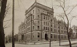 George P. Hays, who had assumed the presidency amid the court battle and the unification controversy, led the newly unified college until 1881.[20] His successor, James D. Moffat, led the college through a period of growth where the college constructed the Old Gym, Hays Hall, Thompson Memorial Library, and Thistle Physics Building, as well as purchasing the land known as the "old fair ground," now used for Cameron Stadium.[21] Towards the end of his term, Moffat personally paid for the 1912 renovations of McMillan Hall.[22] In 1914, Frederick W. Hinitt was elected president. His tenure was dominated by the United States' entry into World War I, with an enrollment drop of 50%.[23]