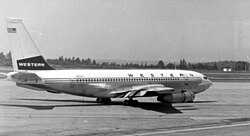 [edit]Western used a variety of piston-powered airliners including Boeing 247Ds, Convair 240s, Douglas DC-3s, DC-4s, DC-6Bs and L-749 Constellations. The Constellations had been operated by Pacific Northern Airlines and served smaller Western Airlines destinations in Alaska such as Cordova, Homer, Kenai, King Salmon, Kodiak and Yakutat from Anchorage or Seattle in the late 1960s.