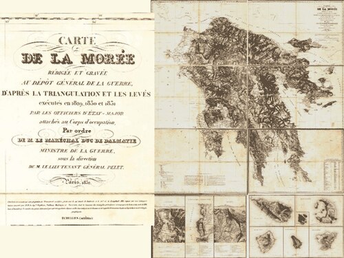 [modifier | modifier le code]Faisant suite aux travaux de fouilles et d'explorations menées en Grèce avant la Révolution, à titre privé, mais avec l'appui officieux du gouvernement français, par le comte de Choiseul Gouffier, l’expédition de Morée est la deuxième des grandes expéditions militaro-scientifiques menées par la France dans la première moitié du XIXe siècle[1],[2].