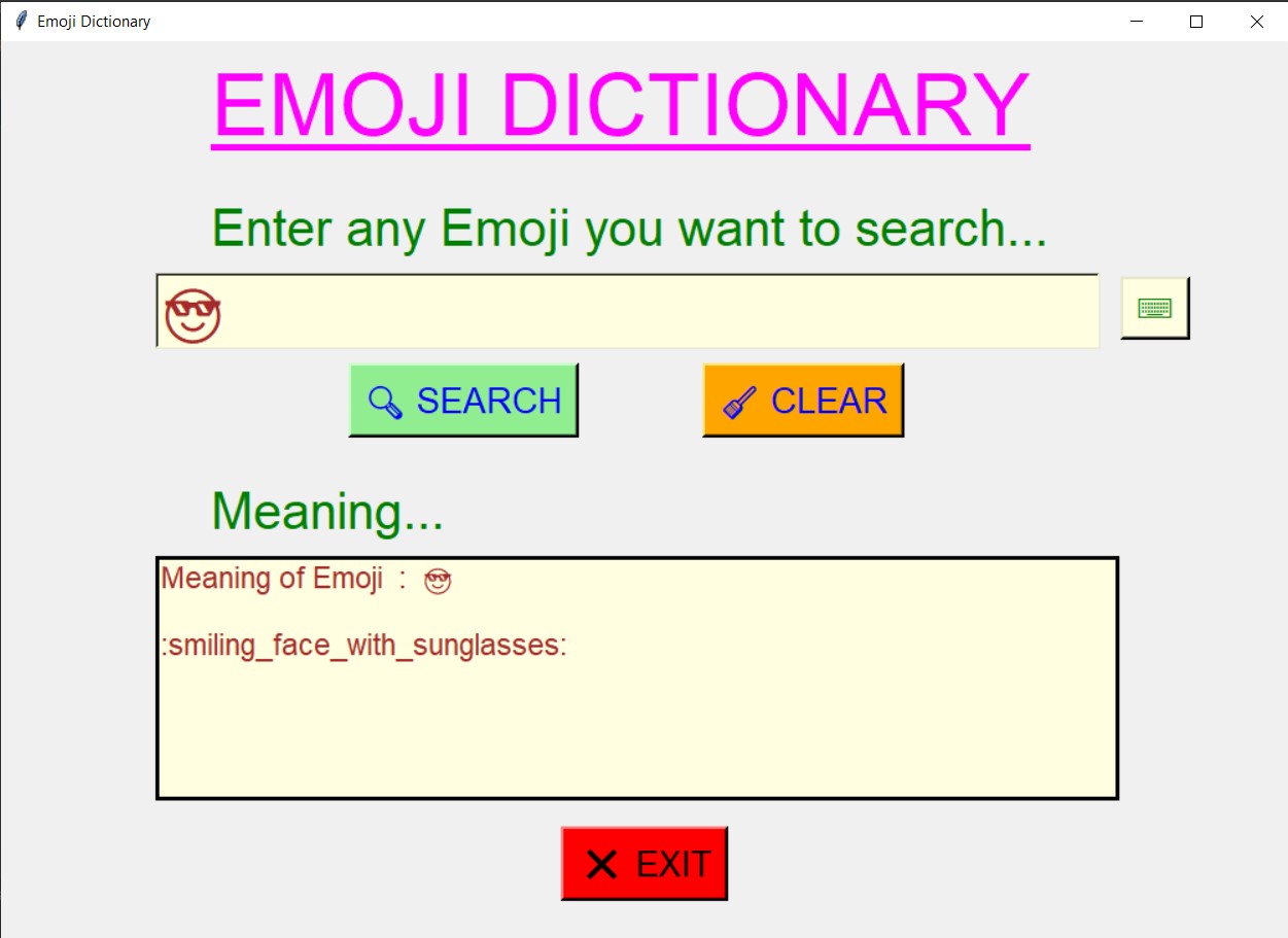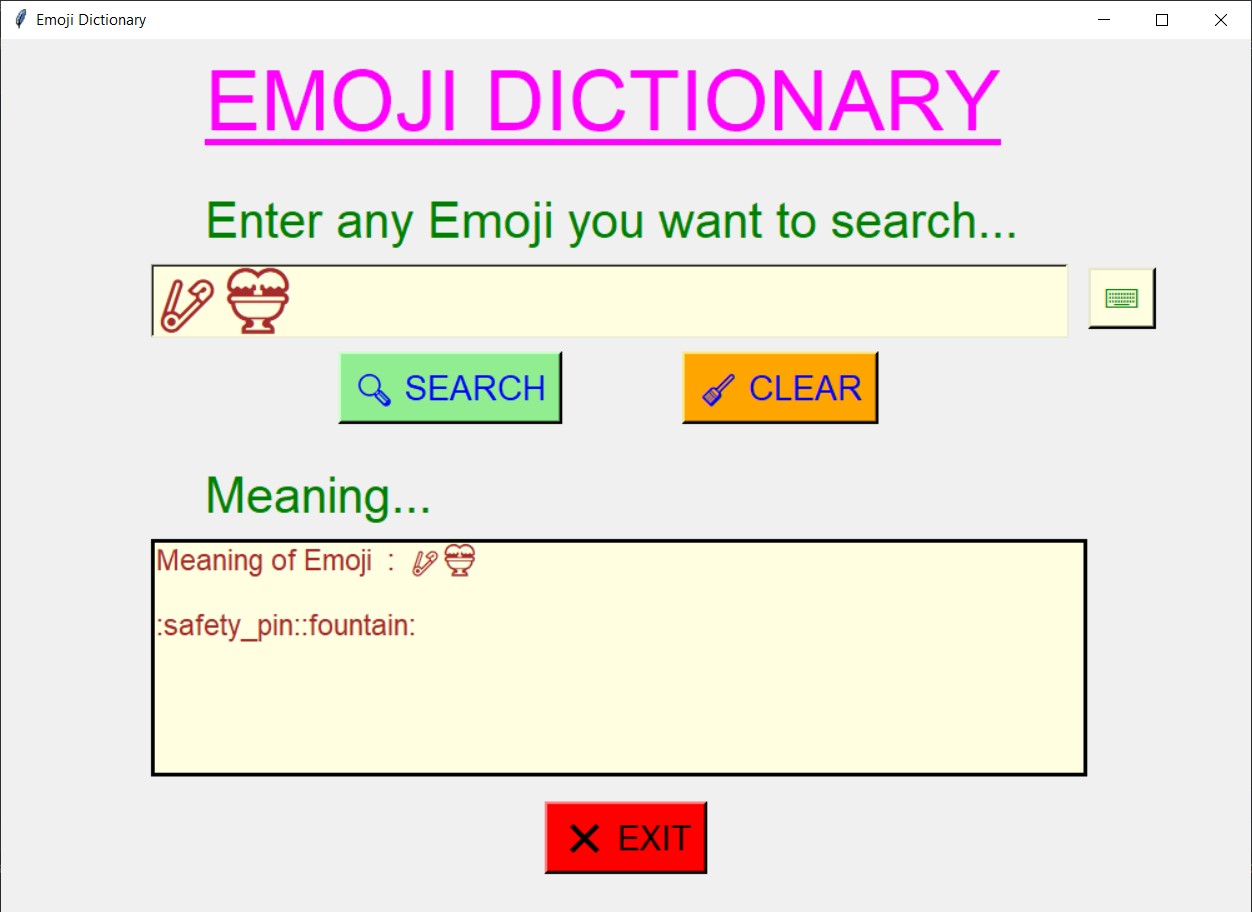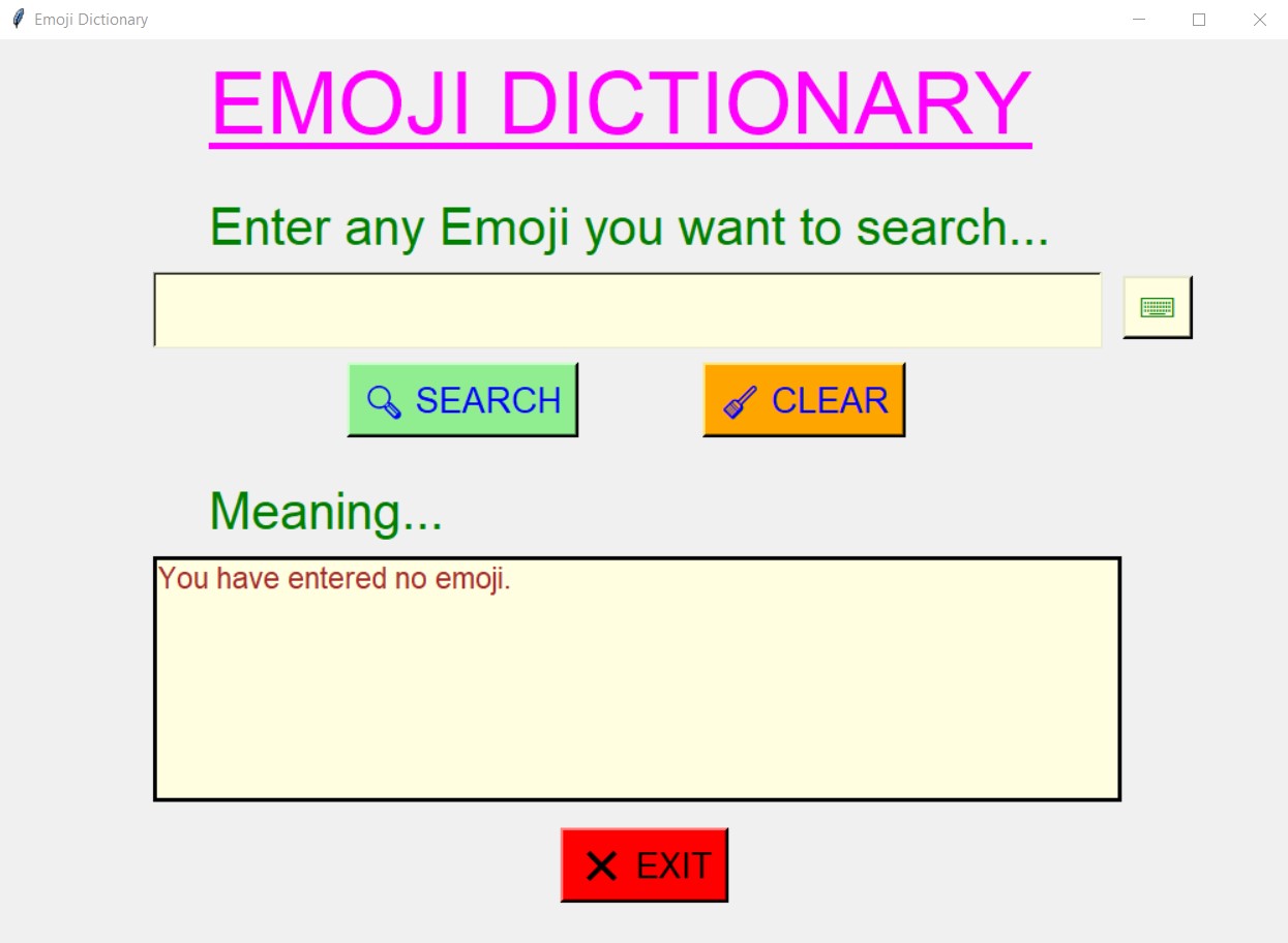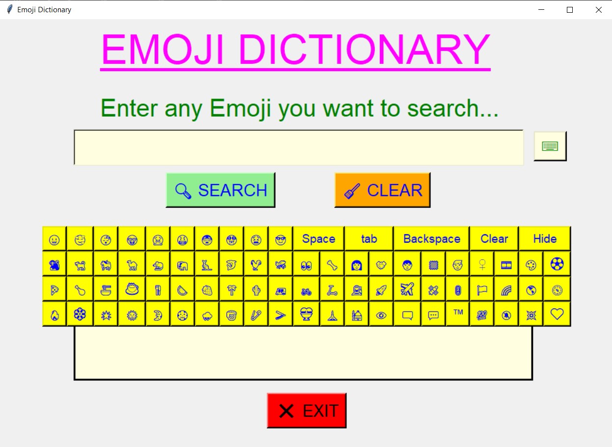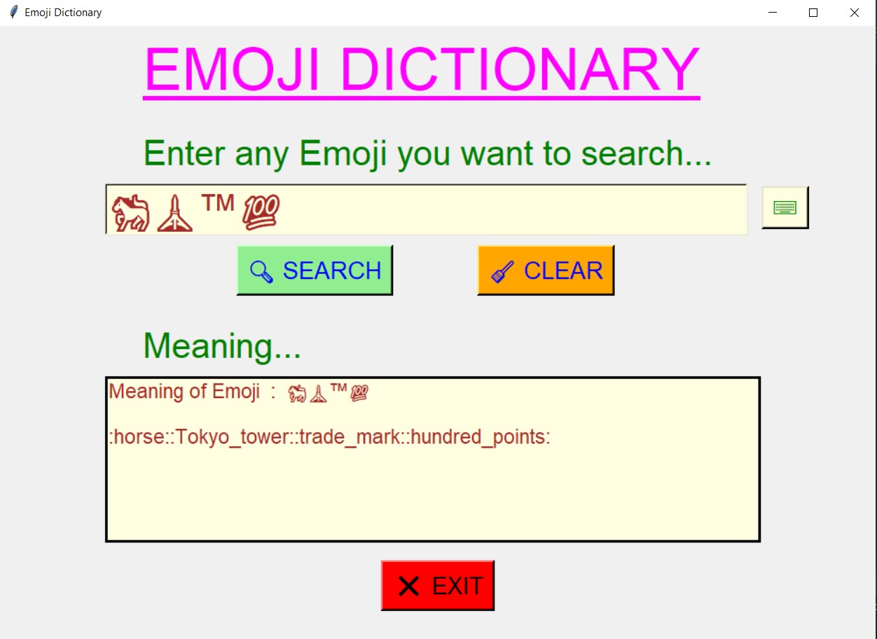 - Using this dictionary, user will be able to search the meaning of any emoji user want yo search.
