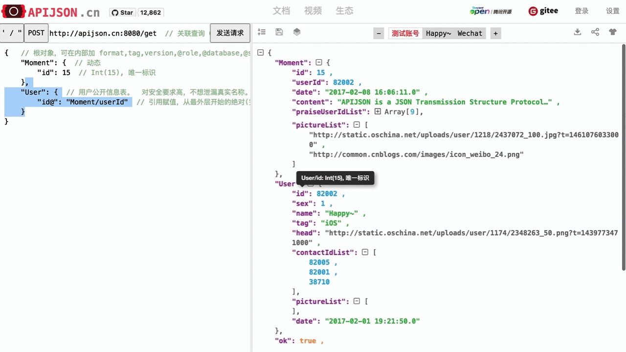 APIJSON 多表关联查询、结构自由组合,APIAuto 多个测试账号、一键共享测试用例