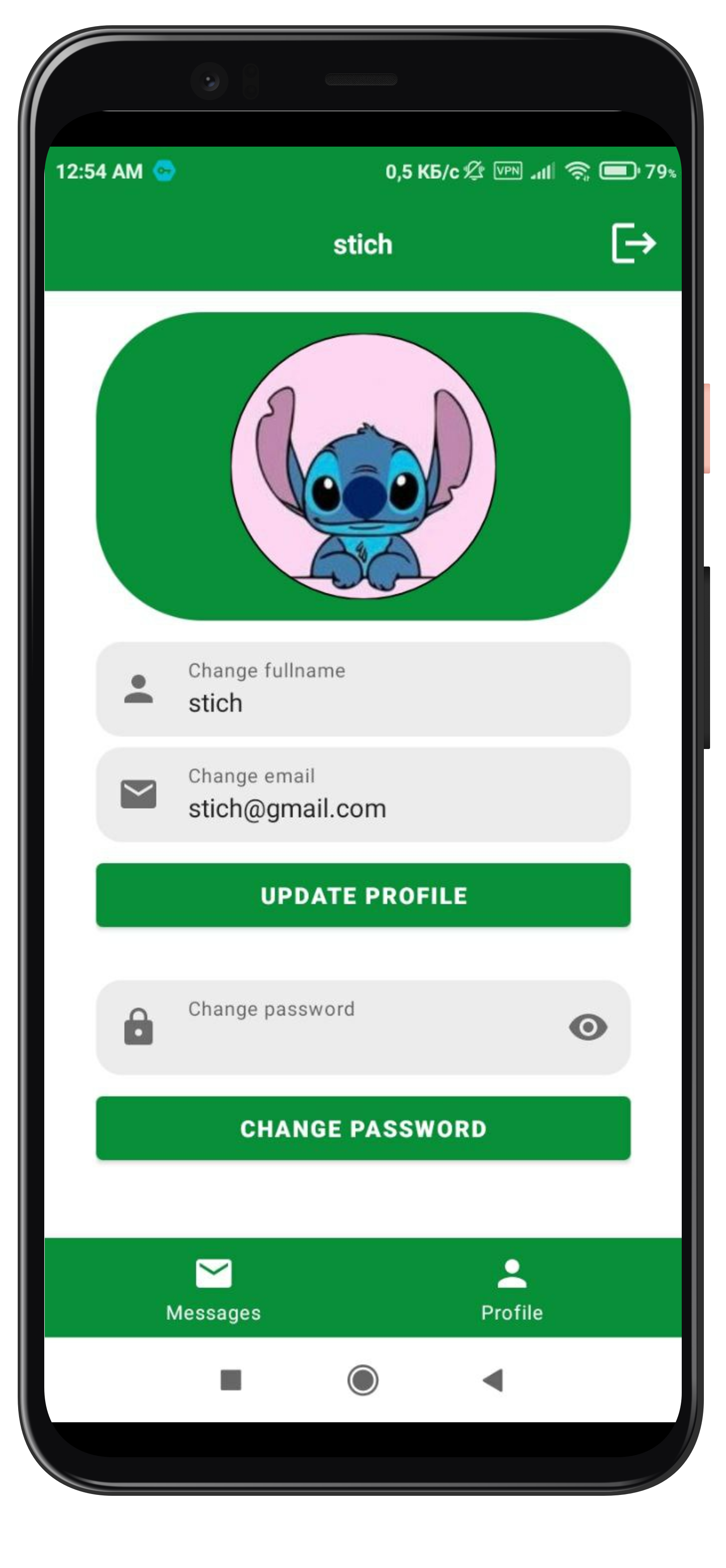 The ideology of the project is to improve the level of English by communicating with each other, sending a message in Russian, it is translated into English and saved in both languages. It is possible to send a message in English (if you know how to write a sentence in English) - it will be translated into Russian and saved in both languages. Upon receipt, all messages are displayed in English.