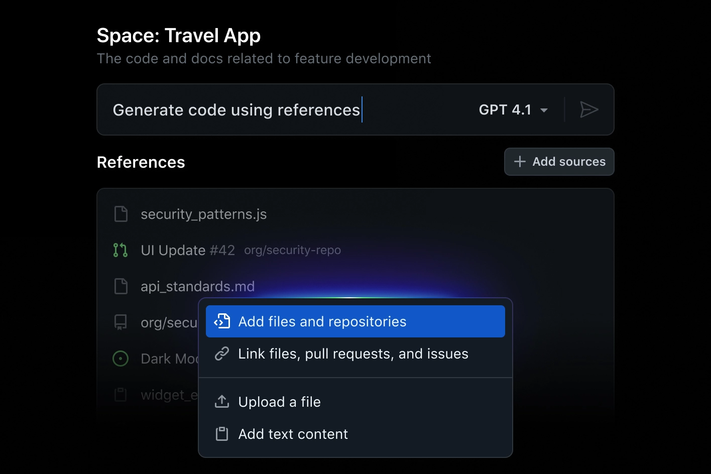 Organize the context GitHub Copilot needs—code, docs, notes, and more—into one place. With Copilot Spaces, you’ll get smarter, more accurate answers tailored to your team, task, or project.