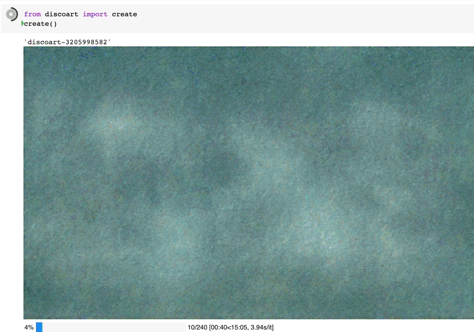 export_python(da)If you are a free-tier Google Colab user, one annoy thing is the lost of sessions from time to time. Or sometimes you just early stop the run as the first image is not good enough, and a keyboard interrupt will prevent .create() to return any result. Either case, you can easily recover the results by pulling the last session ID.