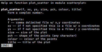 hist takes input from either stdin or specified using the -f parameter. Input should be a single column of numbers. scatter takes x and y coordinates as input form either a comma delimited file using -f or from 2 different files using -x and -y.