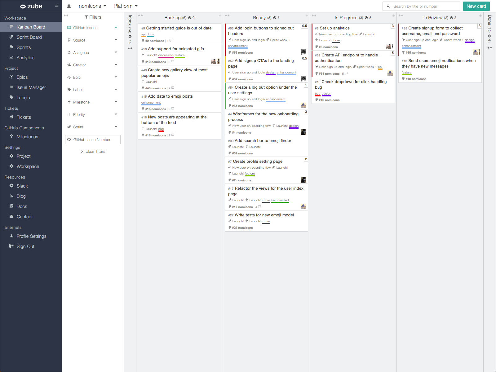 Seamlessly work between Zube and GitHub. Attach a GitHub repository to your Zube project and your data will always stay up to date. On Zube, everyone can collaborate on developer tasks, even if they are not developers.