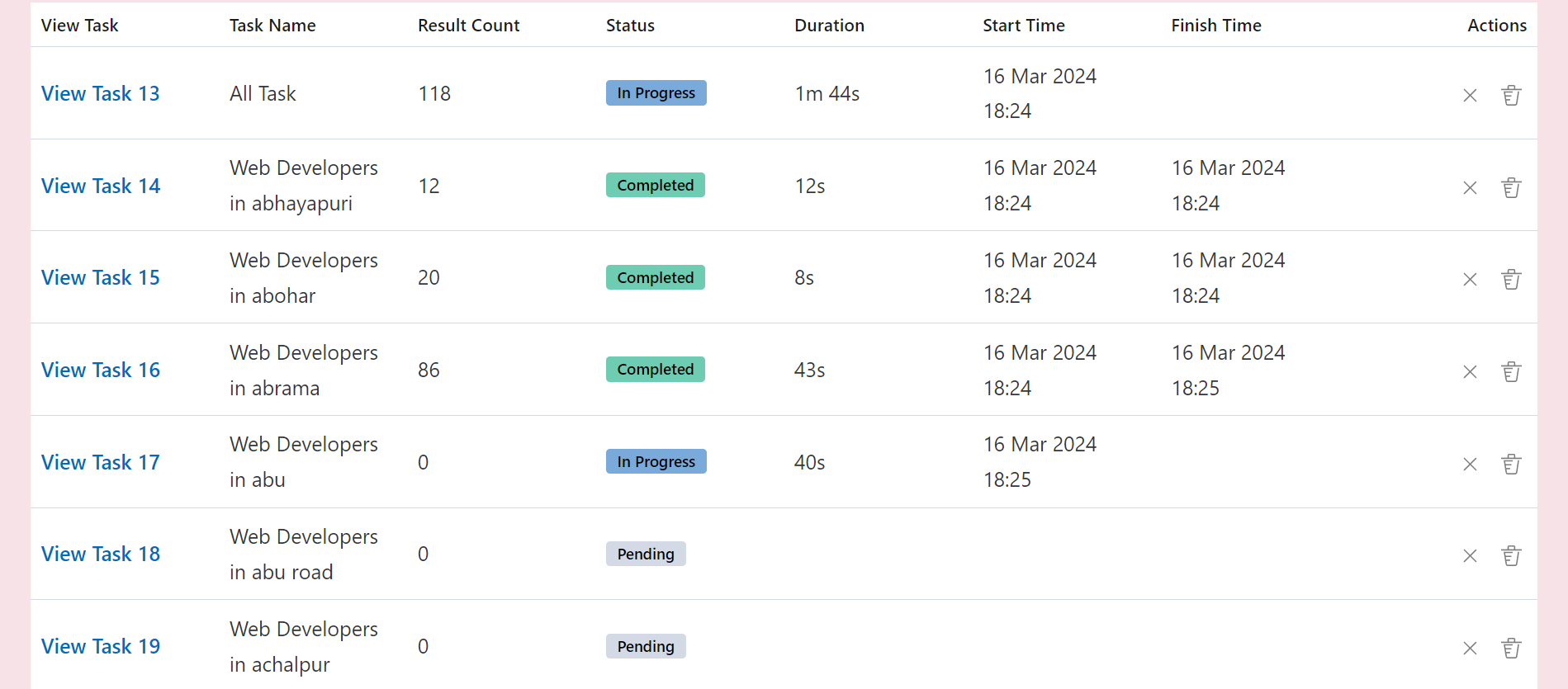 Additionally, whenever you run a query, a task named "All Task" will be created for it, which combines results from multiple queries.