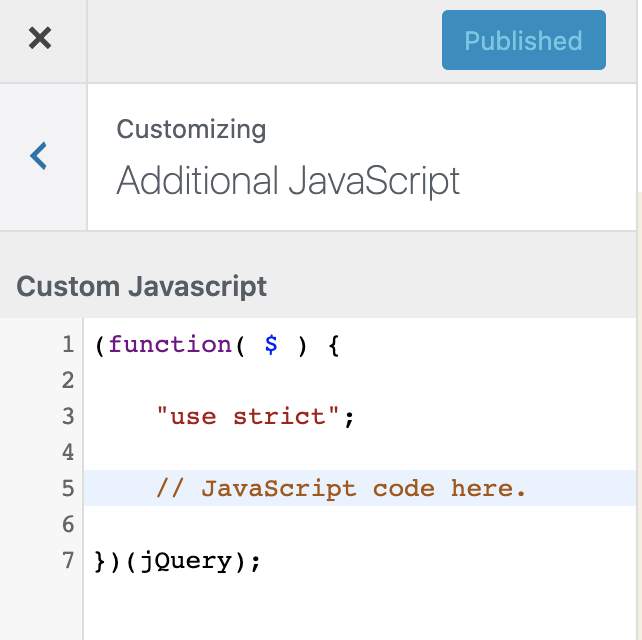 • Add custom JavaScript through the familiar WordPress Customizer interface