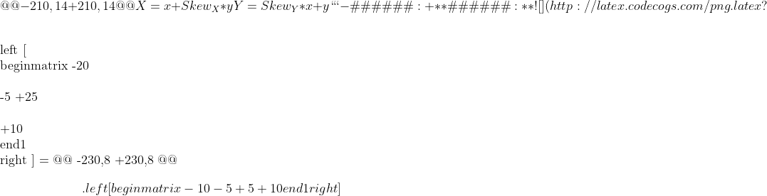 +> +另外,齐次坐标具有等比的性质,(2,3,1)、(4,6,2)...(2N,3N,N)表示的均是(2,3)这一个点。(**将MPERSP_2解释为scale这一误解就源于此**)。 + 图例: ### 2.错切 From 4c00613405ef4b25fc34ad302df1d7f65393c58b Mon Sep 17 00:00:00 2001 From: sloop Date: Wed, 27 Jul 2016 19:50:35 +0800 Subject: [PATCH 165/519] Update --- CustomView/Advance/[9]Matrix_Basic.md | 17 ++++++++++------- 1 file changed, 10 insertions(+), 7 deletions(-) diff --git a/CustomView/Advance/[9]Matrix_Basic.md b/CustomView/Advance/[9]Matrix_Basic.md index 26e090b1..6184c147 100644 --- a/CustomView/Advance/[9]Matrix_Basic.md +++ b/CustomView/Advance/[9]Matrix_Basic.md @@ -119,21 +119,24 @@ $$) $$ \\left [ \\begin{matrix} -X\\\\ -Y +x\\\\ +y\\\\ +1 \\end{1} \\right ] = \\left [ -\\begin{matrix} -1 & Skew\\_X \\\\ -Skew\\_Y & 1 +\\begin{matrix} + 1 & MSKEW\\_X & 0 \\\\ +MSKEW\\_Y & 1 & 0 \\\\ + 0 & 0 & 1 \\end{1} \\right ] \\left [ \\begin{matrix} -x\\\\ -y +x_0\\\\ +y_0\\\\ +1 \\end{1} \\right ] $$) From 8696ef5f1265df06d81e119ae89bfe8768a043f8 Mon Sep 17 00:00:00 2001 From: sloop Date: Wed, 27 Jul 2016 23:32:35 +0800 Subject: [PATCH 166/519] Update --- README.md | 18 ++++++++++++++++++ 1 file changed, 18 insertions(+) diff --git a/README.md b/README.md index c7899b8d..c64d1191 100644 --- a/README.md +++ b/README.md @@ -6,13 +6,31 @@ > #### PS:点击分类标题可以查看该分类的详细信息。 + + ## 目录 +
